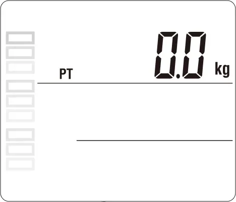 4.体組成計本体から、ワイヤレスアダプターへ電力を供給する設定を行います。体組成計本体の画面に「PT 0.0 kg」と表示されたら、本体の「設定」ボタンを押してください。