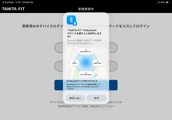 ※「許可しない」をタップした場合はTANITA FITを使用することができません。