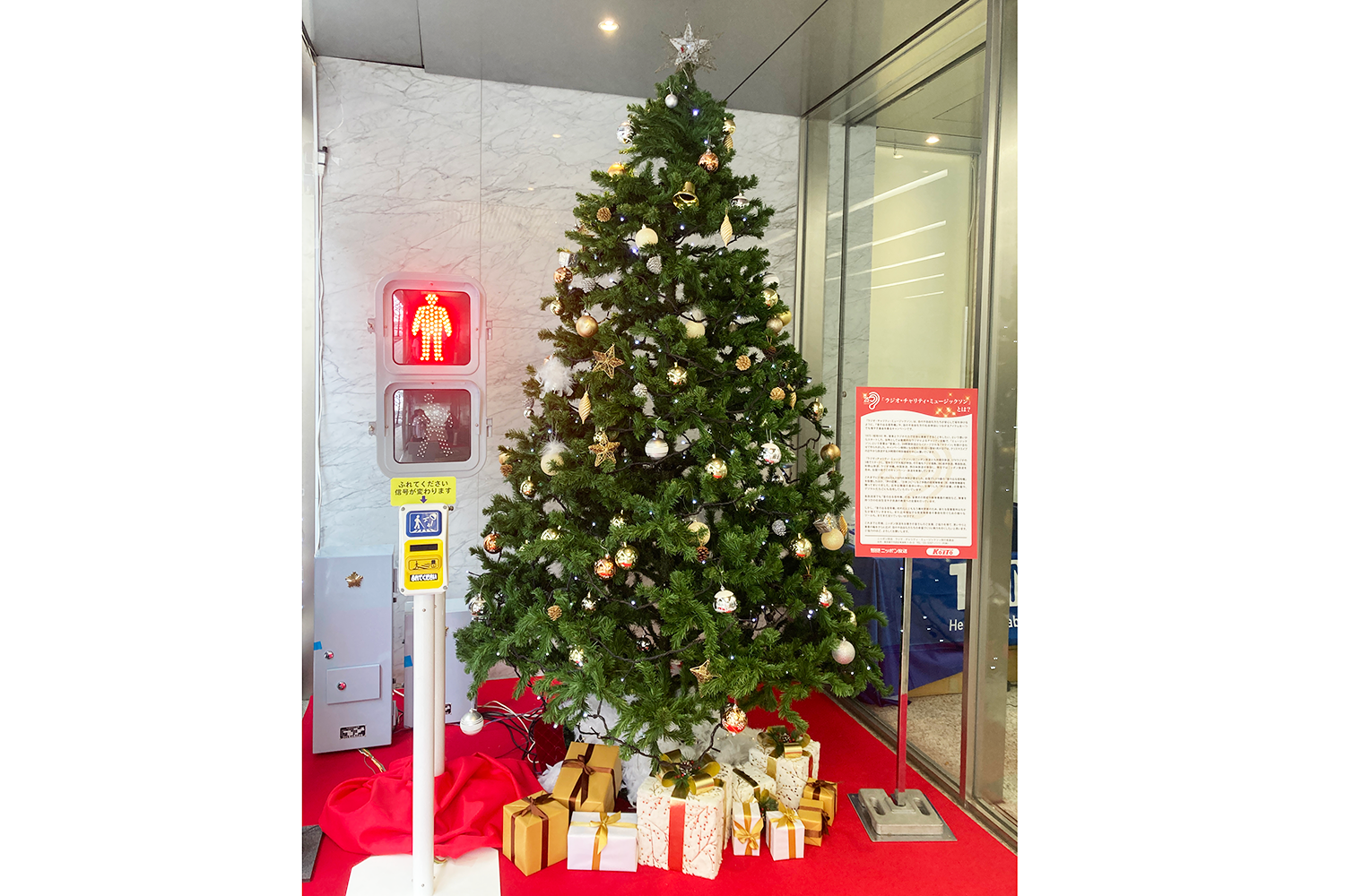 ▲ニッポン放送エントランスに設置されたクリスマスツリーと音の出る信号機