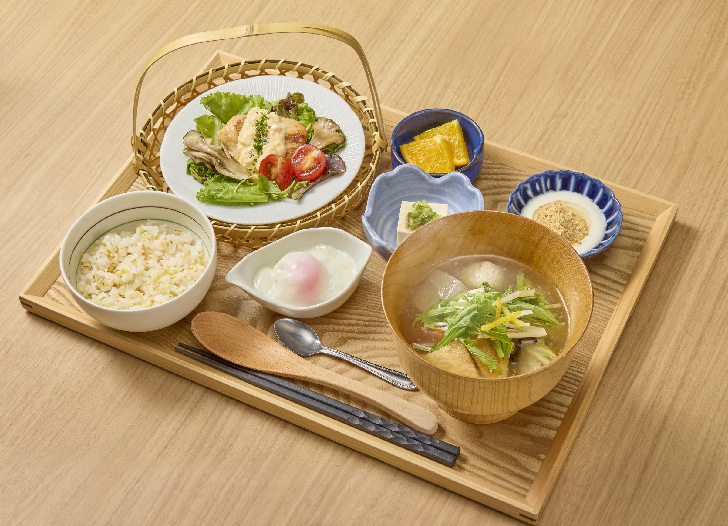 具体的には、ダイエットに取り組む人に向けた低カロリーで栄養バランスの取れた「日替わり定食」のほかに、豊富な品数でしっかり栄養が取れるスープをメインとしたメニューや日常使いとして手軽に食べやすいうどんなど、異なる健康ニーズに対応したメニューをラインアップします。スープをメインにした「大きなお椀で食べるタニタ食堂の具だくさんスープ御膳」はボリュームを調整した主菜と複数の小鉢で構成した、品数豊富な御膳スタイルのメニューです。「日替わり定食」が食材の噛み応えで満足感を得られやすくしているのに対し、スープ御膳では野菜本来の食感を生かしながら、食べやすい大きさや加熱具合に工夫することで無理なく食べられるようにしました。筋力の向上に必要なたんぱく質やカルシウムも、バランスよく取ることができます。また、手軽に食べられる麺料理として人気のうどんに副菜1品を組み合わせた「おだしうどんセット」は、厚生労働省が推奨する1日に必要な野菜量の3分の1と20g以上のたんぱく質を取ることができるのが特徴。だしには鰹節専門店「にんべん」のだしを使用して香りと味わいにこだわるとともに、塩分を3g以下に抑えることで安心してつゆを飲み干せる設計にしました。若年層の食生活の乱れ、高齢者の食欲低下などによるフレイルやサルコペニアへの影響など、世代を問わず「低栄養」が健康課題となっています。ダイエットやからだづくりに加え、これらに対応したメニューを提供することで、日々の健康づくりに必要な食事を「無理なく」「おいしく」取れるようにしました。