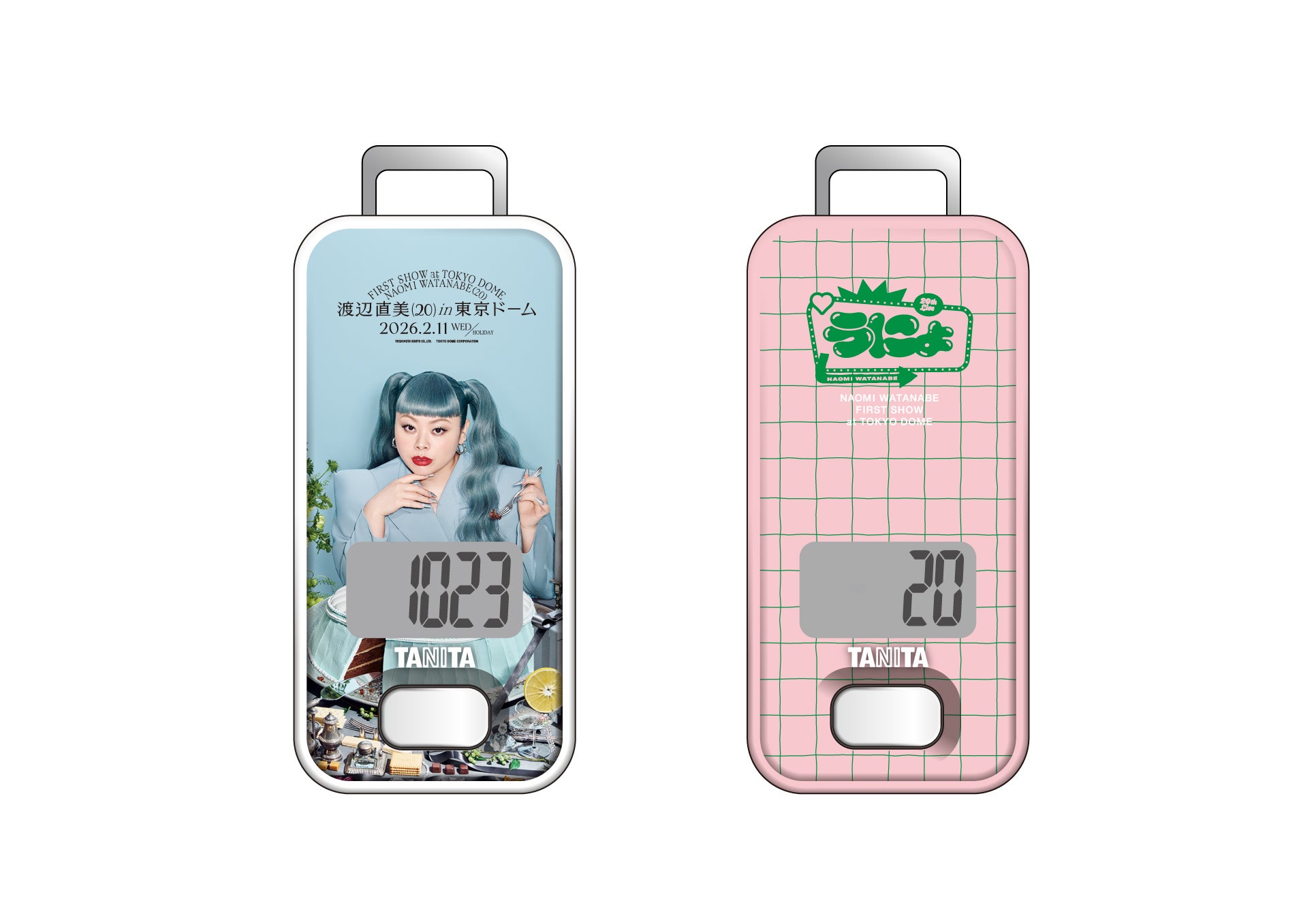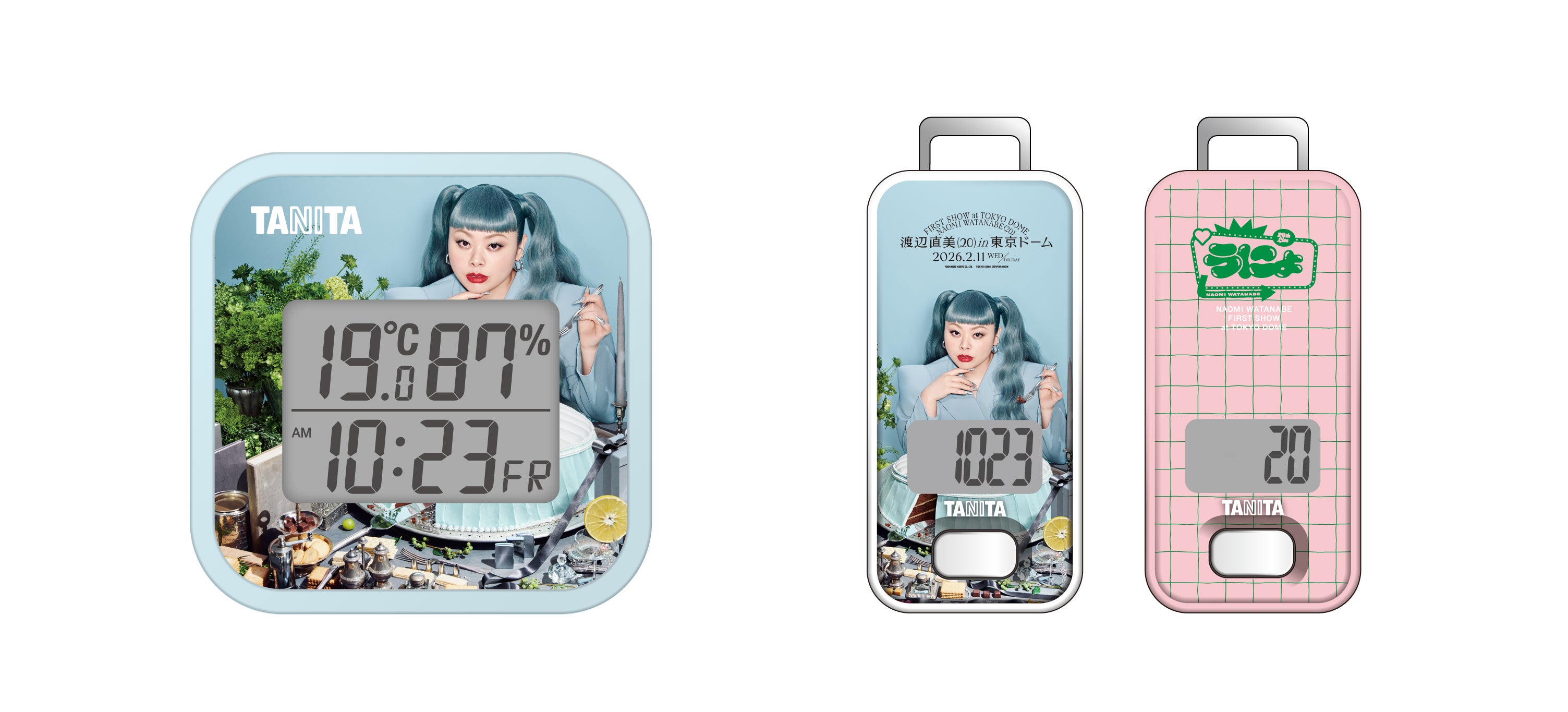健康総合企業の株式会社タニタ(東京都板橋区、代表取締役社長・谷田千里)は、お笑い芸人の渡辺直美さんが開催する単独ライブ「渡辺直美 (20) in 東京ドーム」とコラボレーションした温湿度計と歩数計を発売します。本日1月13日午後2時から1月23日午後1時までタニタオンラインショップ(https://shop.tanita.co.jp/)で先行予約を受け付け、2月2日午前10時から同ショップで通常販売をスタートします。先行予約期間に予約された商品は、1月26日から順次発送します。また2月11日に開催される、渡辺直美さんのデビュー20年目を記念したライブ「渡辺直美 (20) in 東京ドーム」の会場でも販売します。数量限定販売となり、なくなり次第販売を終了します。価格は温湿度計、歩数計ともに3520円(税込)です。