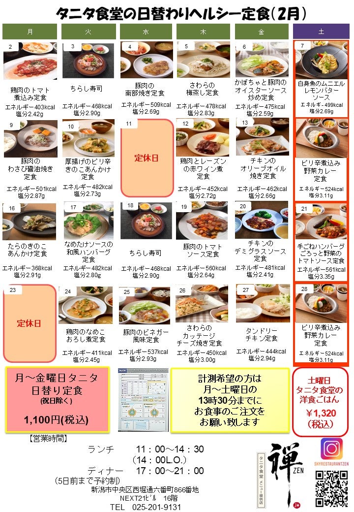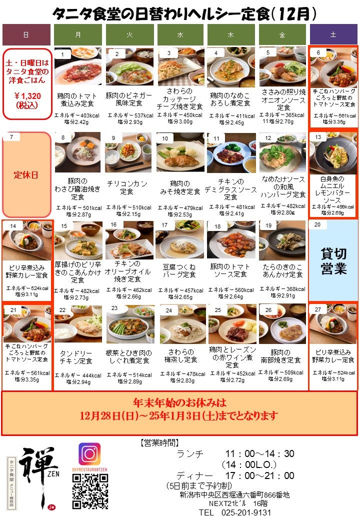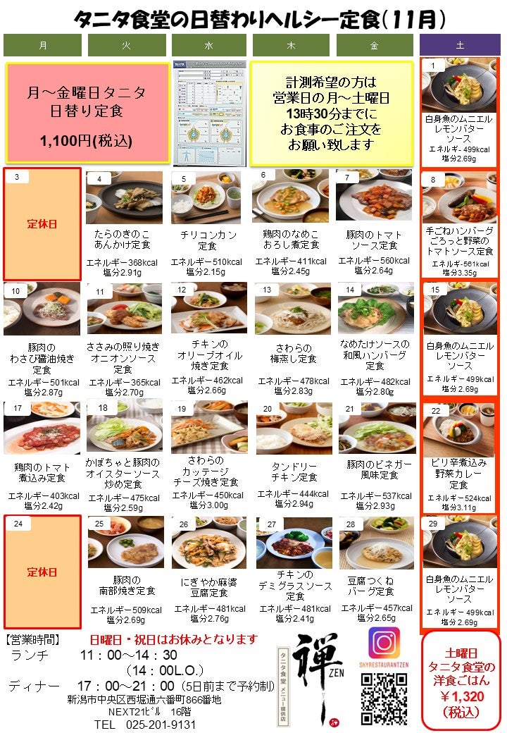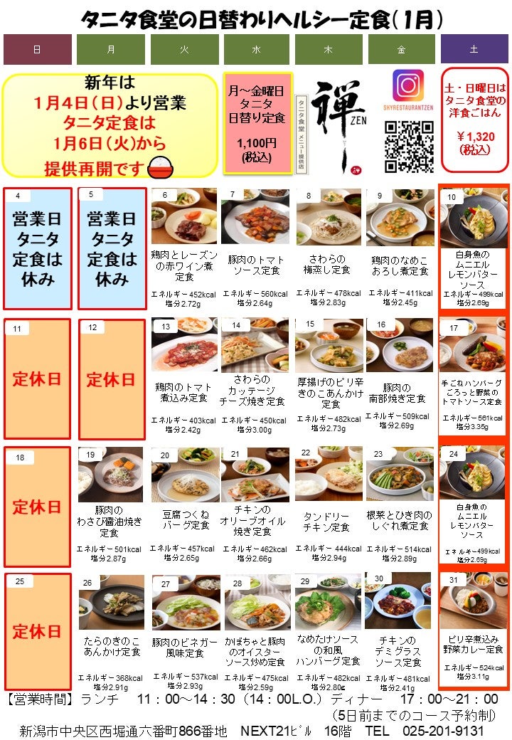 【禅(ZEN) メニューカレンダー】 ※画像をクリック頂くと、拡大してご覧いただけます。 ※食材調達の都合上、一部変更になる場合もございます。